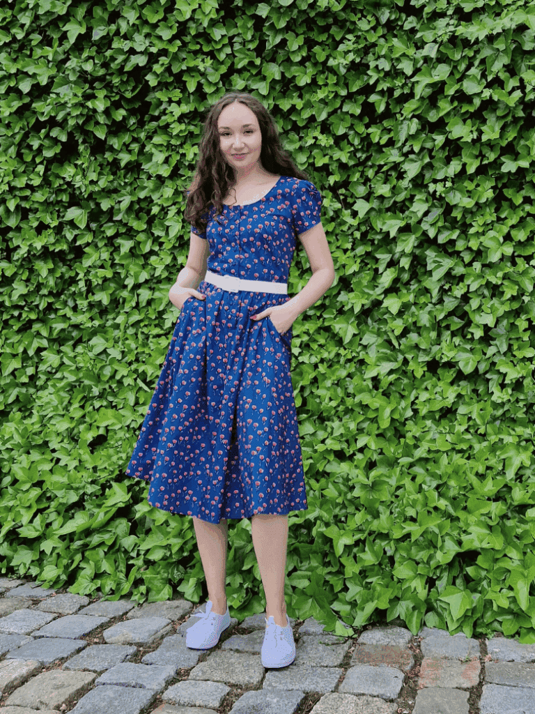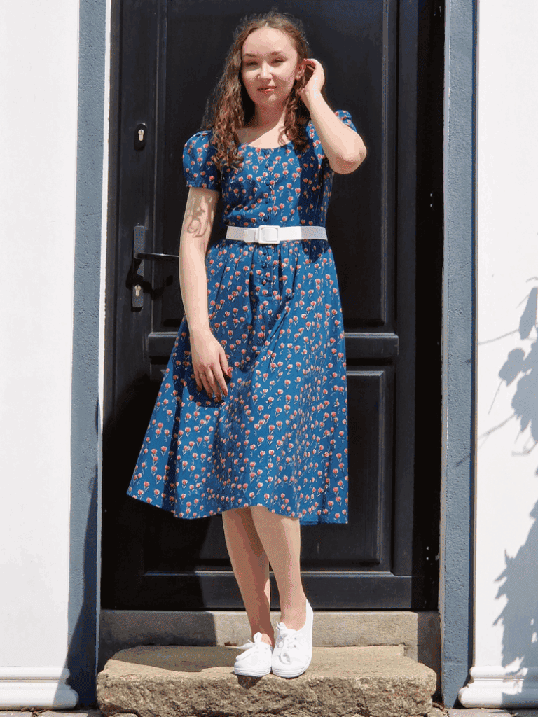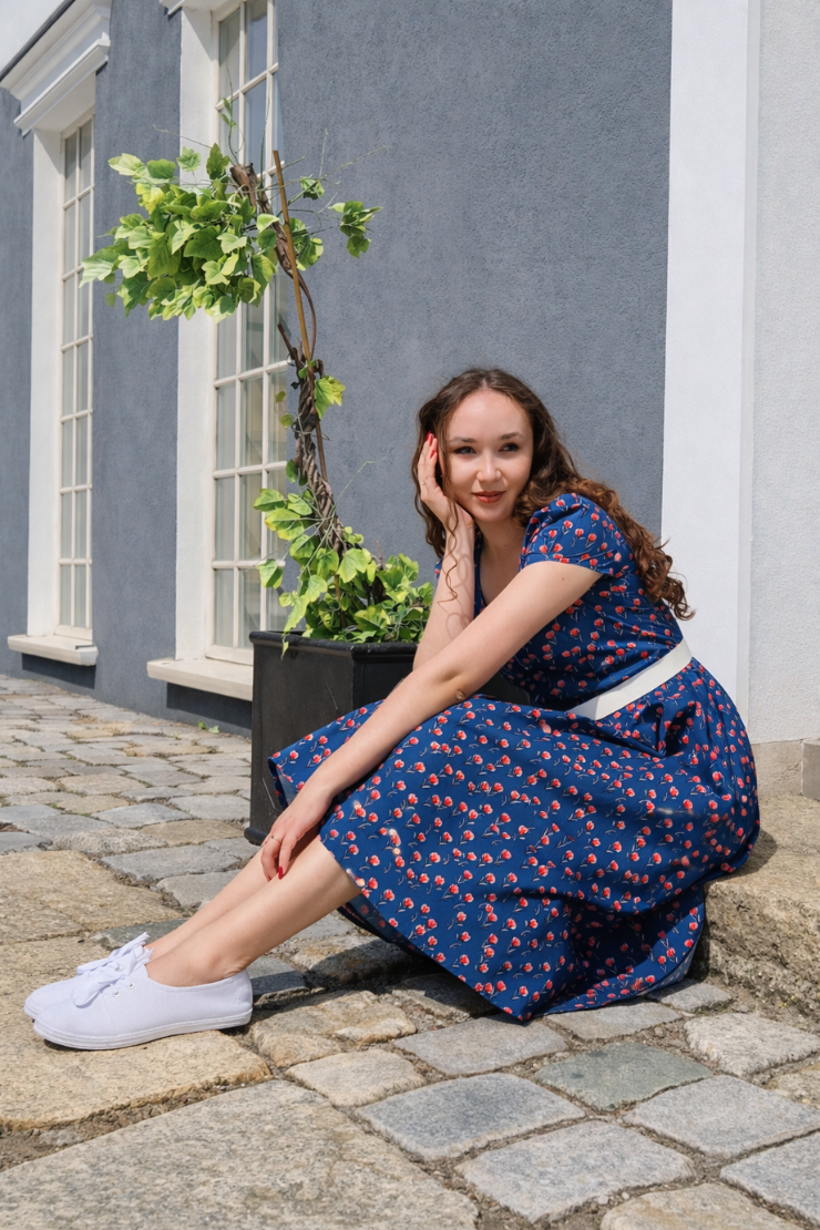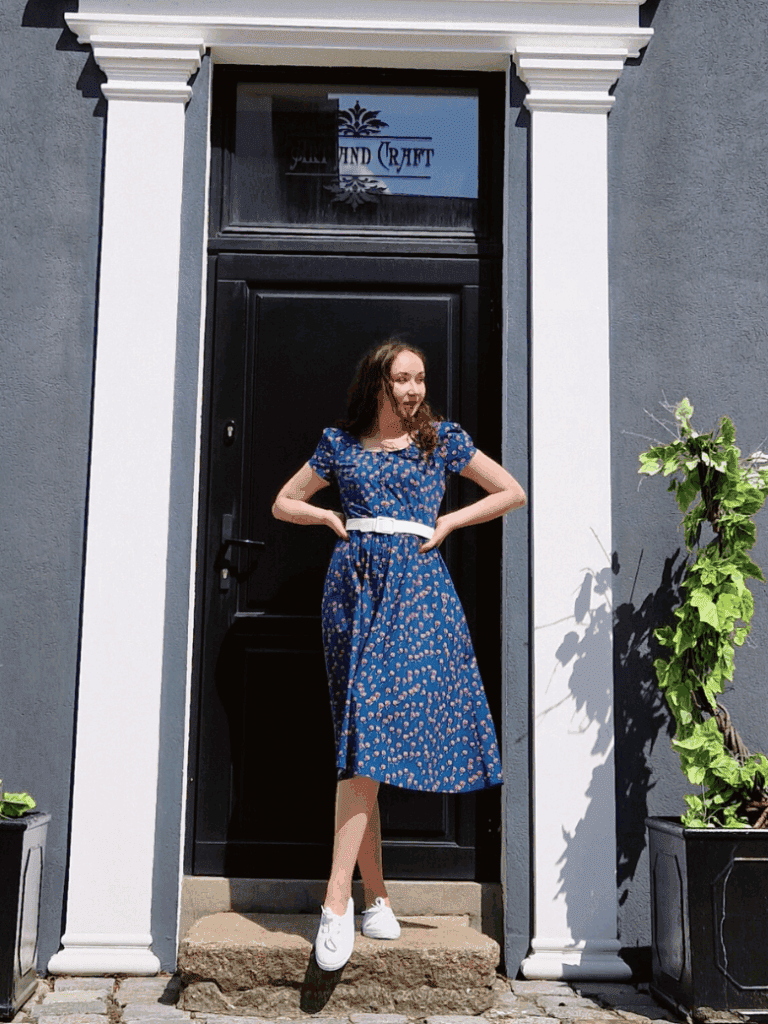 Sukienka Vivien – ponadczasowy model, który zachwyci każdą kobietę ceniącą sobie wyjątkowe ubrania. Stworzona z myślą o wiosennych i letnich spacerach, świetnie nada się nie tylko na romantyczne wyjścia, ale też na co dzień. Powstała z inspiracji latami 50. XX wieku. Wyważona, lekka, świetnie podkreśli nie tylko szczupłą sylwetkę, ale także tę, która potrzebuje wydobycia swoich atutów. Uzupełniona o detale – materiałowe guziki i pasek, które dodają jeszcze większej elegancji i podkreślają kobiecość. Połączenie elegancji i wygody – dzięki kieszeniom jest także praktyczna i nabiera bardziej codziennego looku.